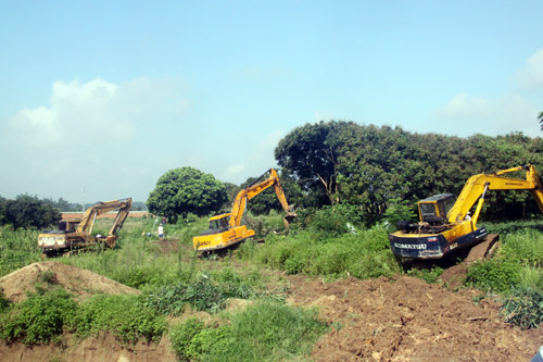 2014年7月8日上午9時,夏日驕艷、晴空萬里,隨著公司董事長、總經(jīng)理鄧豪的一聲令下,湘桂·盛天名城項目現(xiàn)場10多臺挖掘機、推土機立刻有序開工,項目近300畝土地的清場工作全面開展。由于得到了集團公司和靈山縣委、縣政府、司法機關(guān)等有關(guān)部門的大力支持和現(xiàn)場指導(dǎo)、配合,當天下午18時許,清場工作便基本完成,為7月12日的項目營銷中心動工建設(shè)打下了良好的基礎(chǔ)。